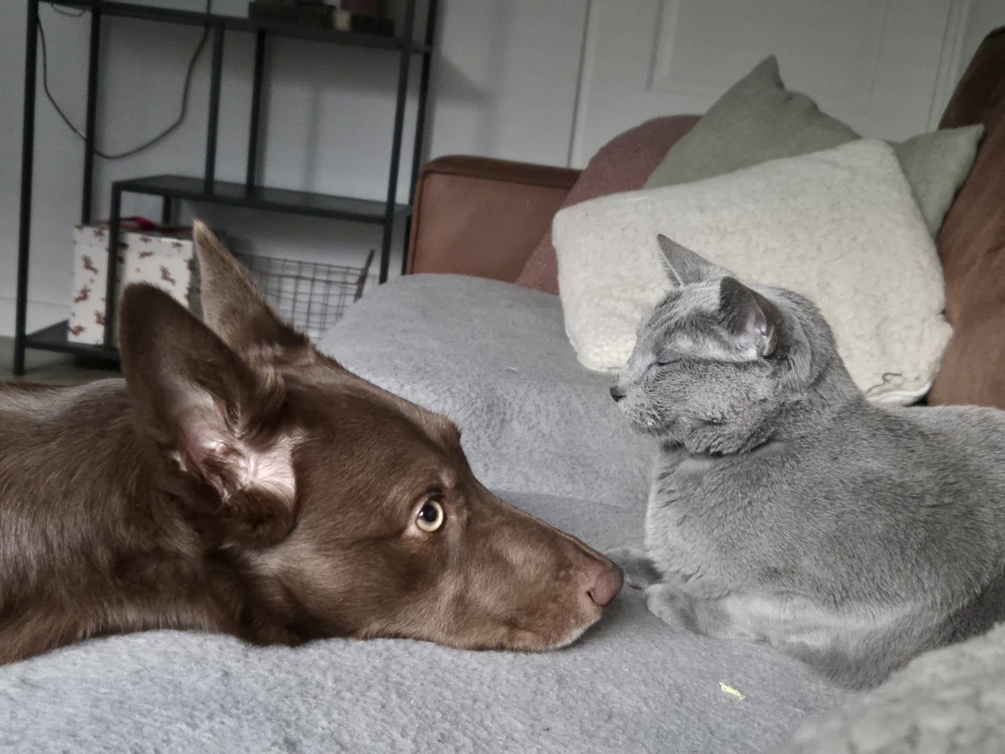 Maar het allerfijnst is het natuurlijk om weer thuis te zijn! Daar kreeg Abby alle aandacht die ze nodig had tijdens haar herstel. Zowel van haar baasje als van haar beste vriendin Faya, die haar met liefde gezelschap hield.