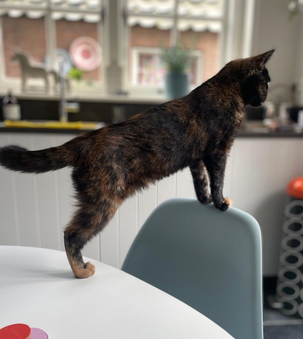 Helaas is het bij een kat niet altijd even makkelijk om een botbreuk te herstellen. De revalidatie, waarbij een kat weken tot maanden benchrust moet houden, kan een ellendige periode zijn. Zeker voor een jong katje dat niet gewend is om in beweging beperkt te worden. Hierdoor hebben we ervoor gekozen om haar poot te amputeren. Dit klinkt als een hele grote ingreep, maar omdat het pijnlijke lichaamsdeel verwijderd wordt, zien we in de praktijk dat een kat snel weer de oude is. Nog geen half uur na de operatie liep dit kitten op drie poten alsof ze nooit anders gewend was!